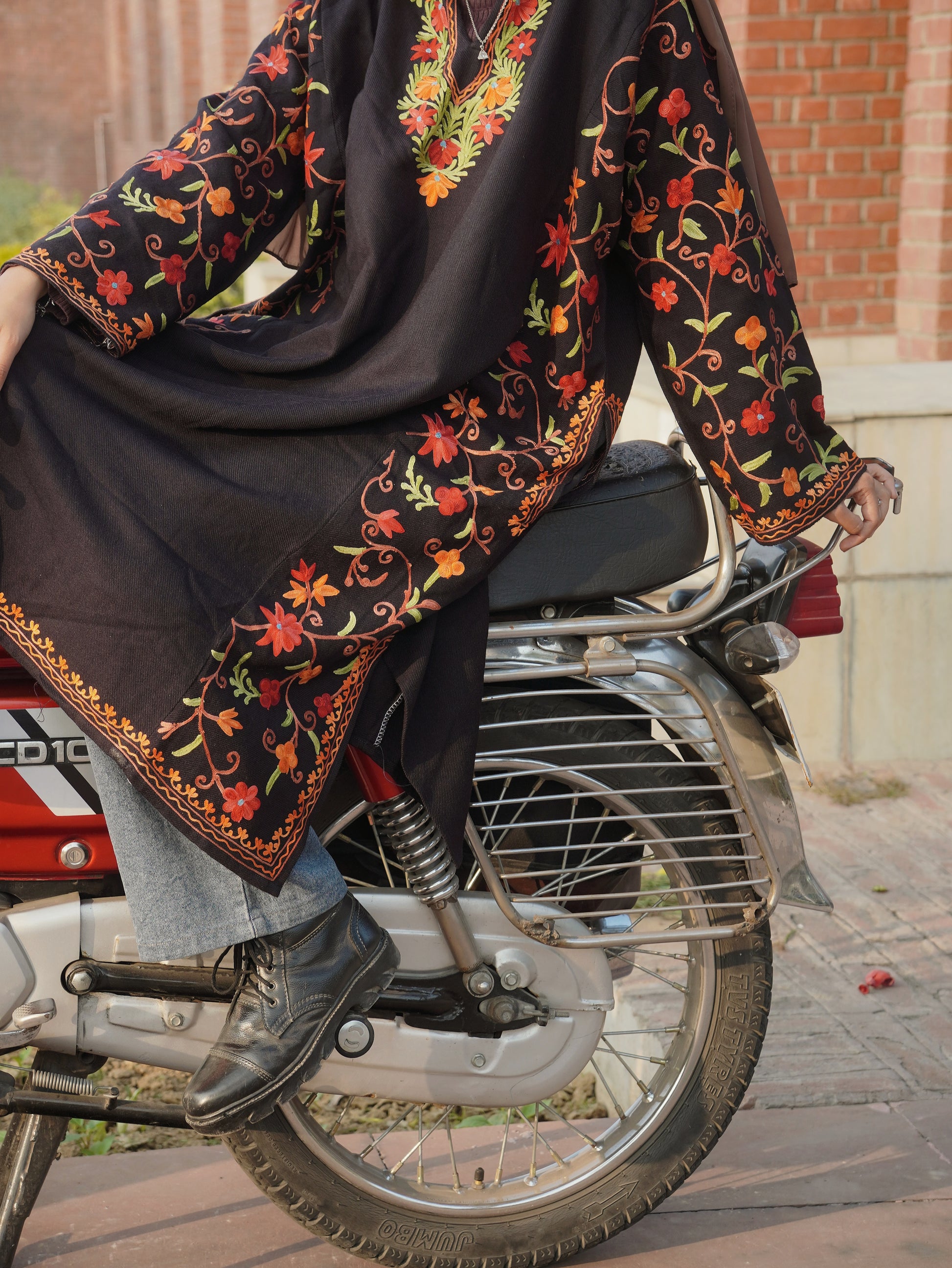 - Embroidery: Detailed Kashmiri Aari embroidery with intricate floral designs.